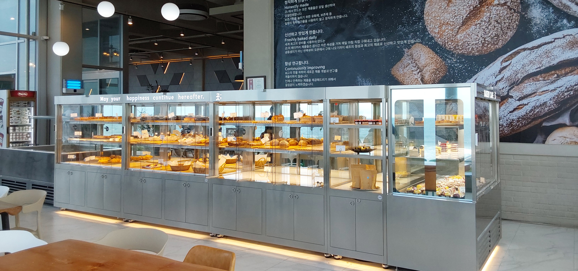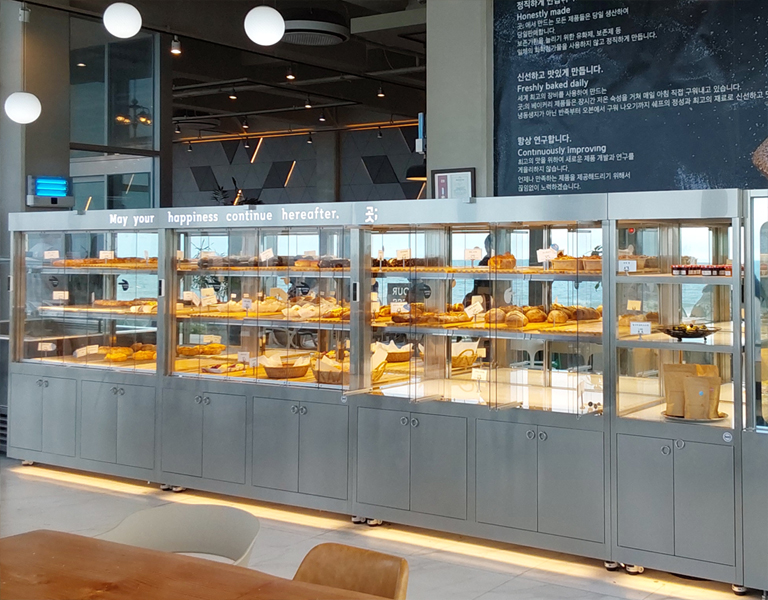 "Smart sneeze guard" showcase (bread display standㆍrefrigerated product display stand)