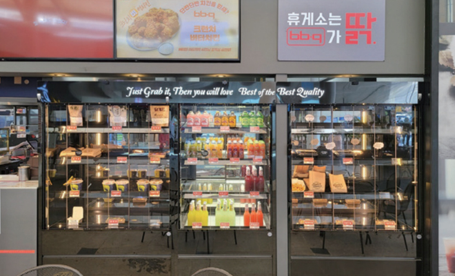 문이 자동으로 닫히는 스마트 쇼케이스입니다.